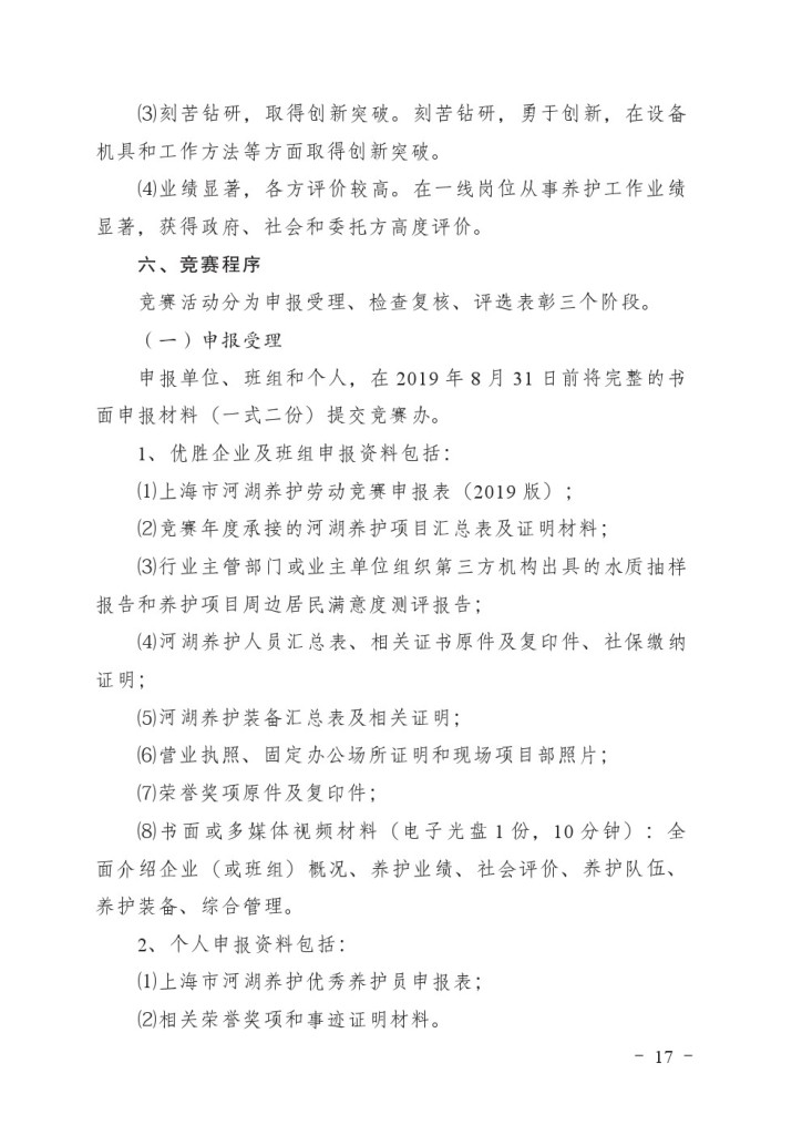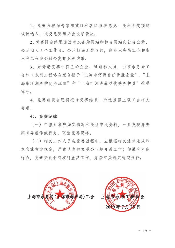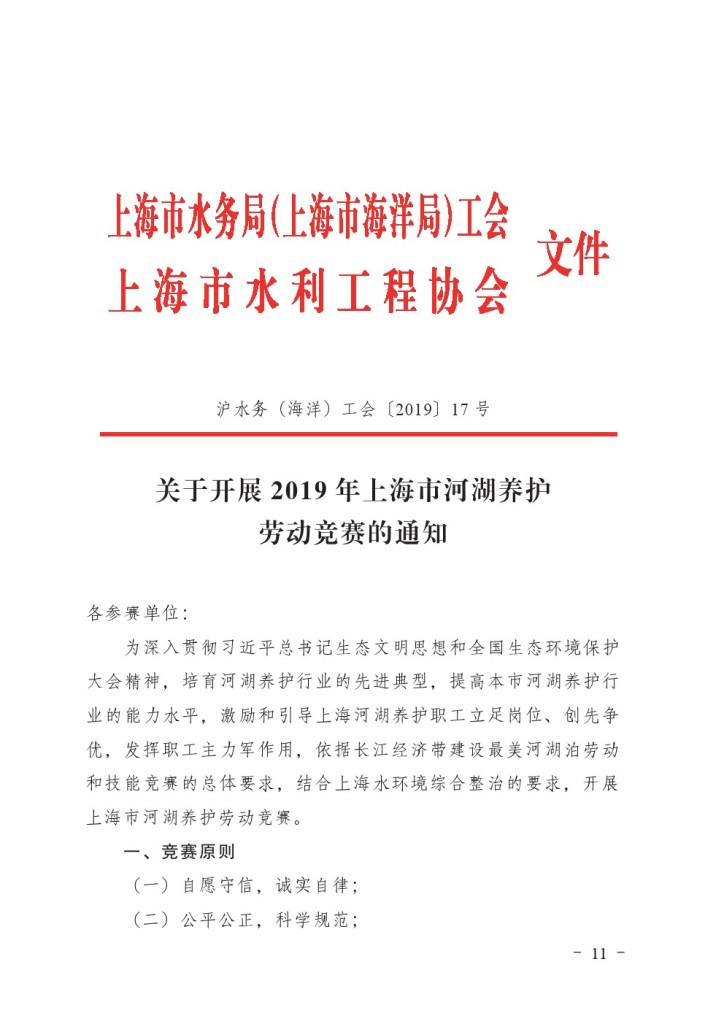 资格资质 关于开展2019年上海市河湖养护劳动竞赛的通知
