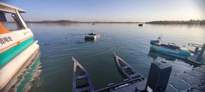 调研智慧水利科技,走访会员单位。11月27日下午,协会一行前往欧卡智舶公司调研,参观企业总部与科技展厅,了解水面机器人、智能船舶等智慧水利装备的研发与应用。协会一行赴昆明池水面机器人试验基地实地观摩,检查智能船舶运行效果,加深对智慧水利应用技术的认识。