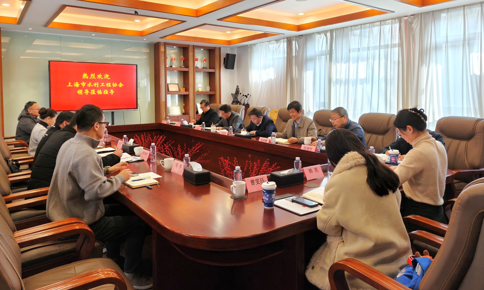 3月20日上午,市水利工程协会会长刘晓涛一行赴协会理事单位上海万江环境科技有限公司走访调研,协会常务副会长兼秘书长张林辉、副会长马维忠、监事长倪锦生和有关人员参加调研,上海万江环境科技有限公司董事长徐强及公司相关负责人陪同调研。