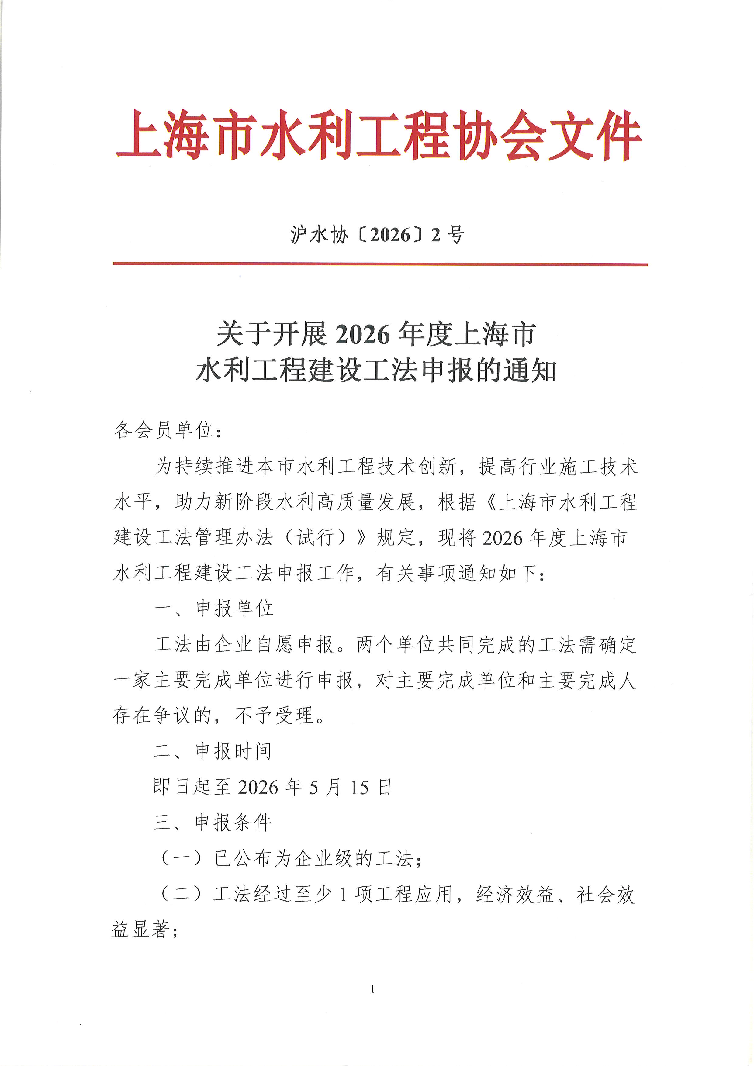 文件下载:关于开展2026年度上海市水利工程建设工法申报的通知