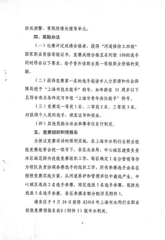 关于组织开展上海市河道修防工职业技能竞赛的通知