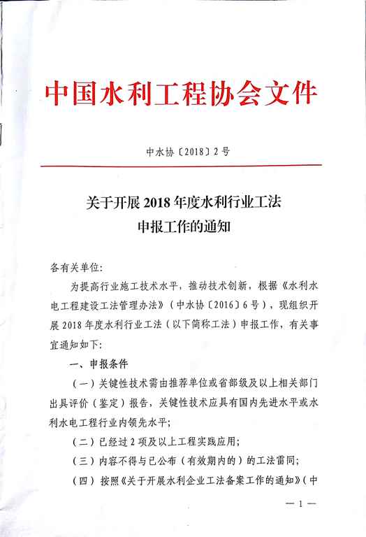 转发中国水利工程协会《关于开展2018年度水利行业工法申报工作的通知》