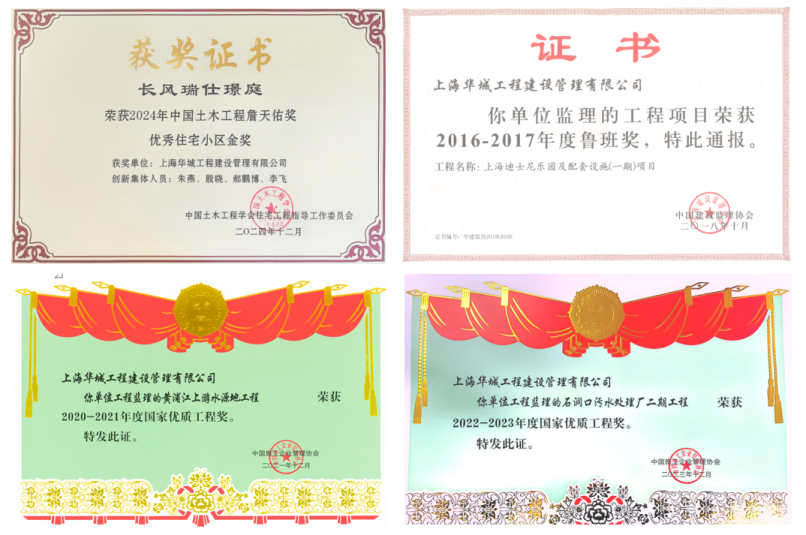 华城公司在房屋建筑工程、市政公用工程、公路工程、环境与生态工程、水利工程、房屋装饰装修等领域累计完成3500多项工程,先后获得国家鲁班奖、国家詹天佑奖、国家优质工程奖、李春奖(公路交通优质工程奖)、上海市白玉兰奖、上海市金刚奖、上海市市政工程金奖、上海市水利优质工程奖等多项殊荣,受到社会各界好评。