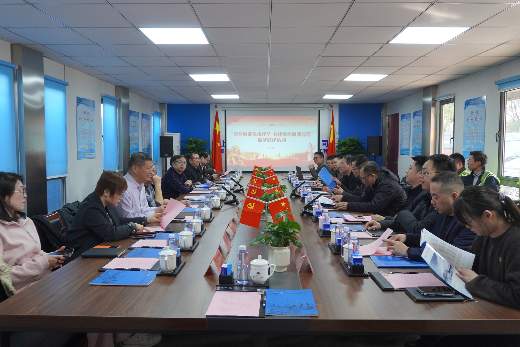 为深入学习贯彻党的二十大及历次全会精神,推动党建与业务深度融合, 1月14日下午,上海市水利工程协会、青浦区水务局联合开展“党建赋能治水攻坚 共建幸福河湖典范”联学联建活动。通过实地观摩与座谈交流相结合,聚焦河湖水系系统治理成效与经验共享,政、企、协合力共推上海水环境治理与高质量发展。