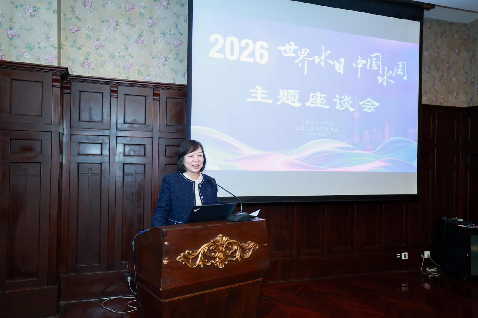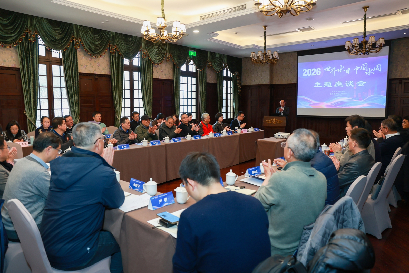 三月的上海,春潮涌动,万象更新。在第三十四届 “世界水日”、第三十九届 “中国水周”到来之际,为深入贯彻国家水网建设战略部署,精准谋划太湖流域片水网建设路径,以“国家水网 世纪画卷”为主题的座谈会在市科学会堂成功举办。会议由上海市水利学会与上海市水利工程协会联合主办,聚焦太湖流域片水网规划与发展,汇聚水务行业多方力量,共商水网建设大计,共谋流域水利高质量发展。市水利学会、市水利工程协会、市水文协会相关负责人,水利学会资深会员和市相关水利(水务)部门及高校等单位的领导专家学者等40多人参加座谈交流。