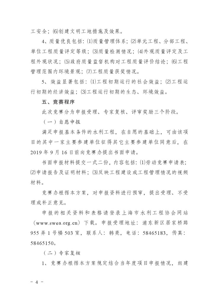 考核评优 关于开展2019年上海市水利工程建设劳动竞赛的通知